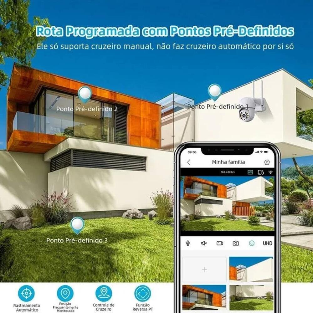 Equipada com visão noturna infravermelha, garante monitoramento 24 horas por dia, mesmo em ambientes com pouca iluminação. Conta ainda com detecção inteligente de movimento, enviando notificações ao smartphone sempre que houver atividade suspeita.